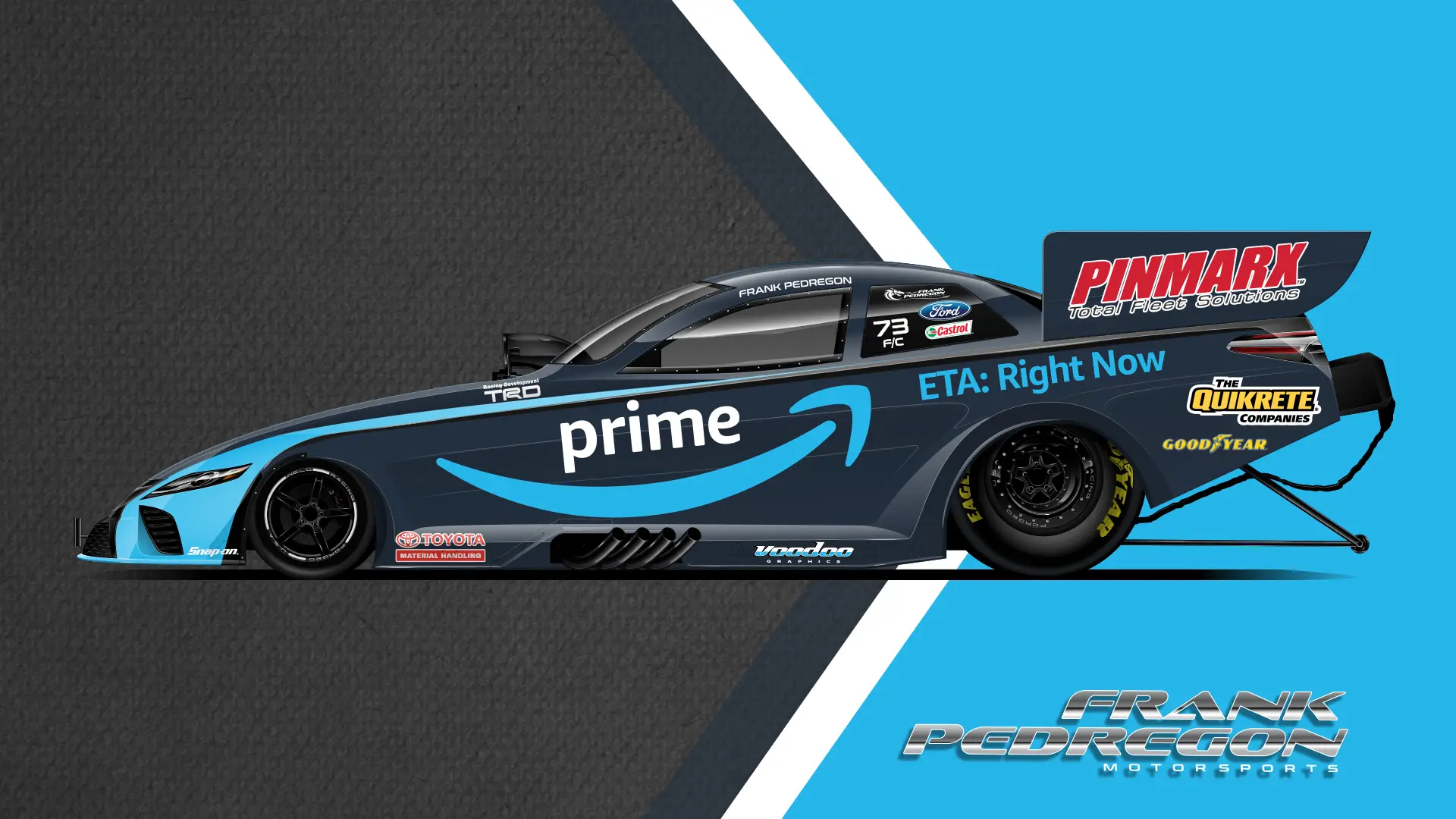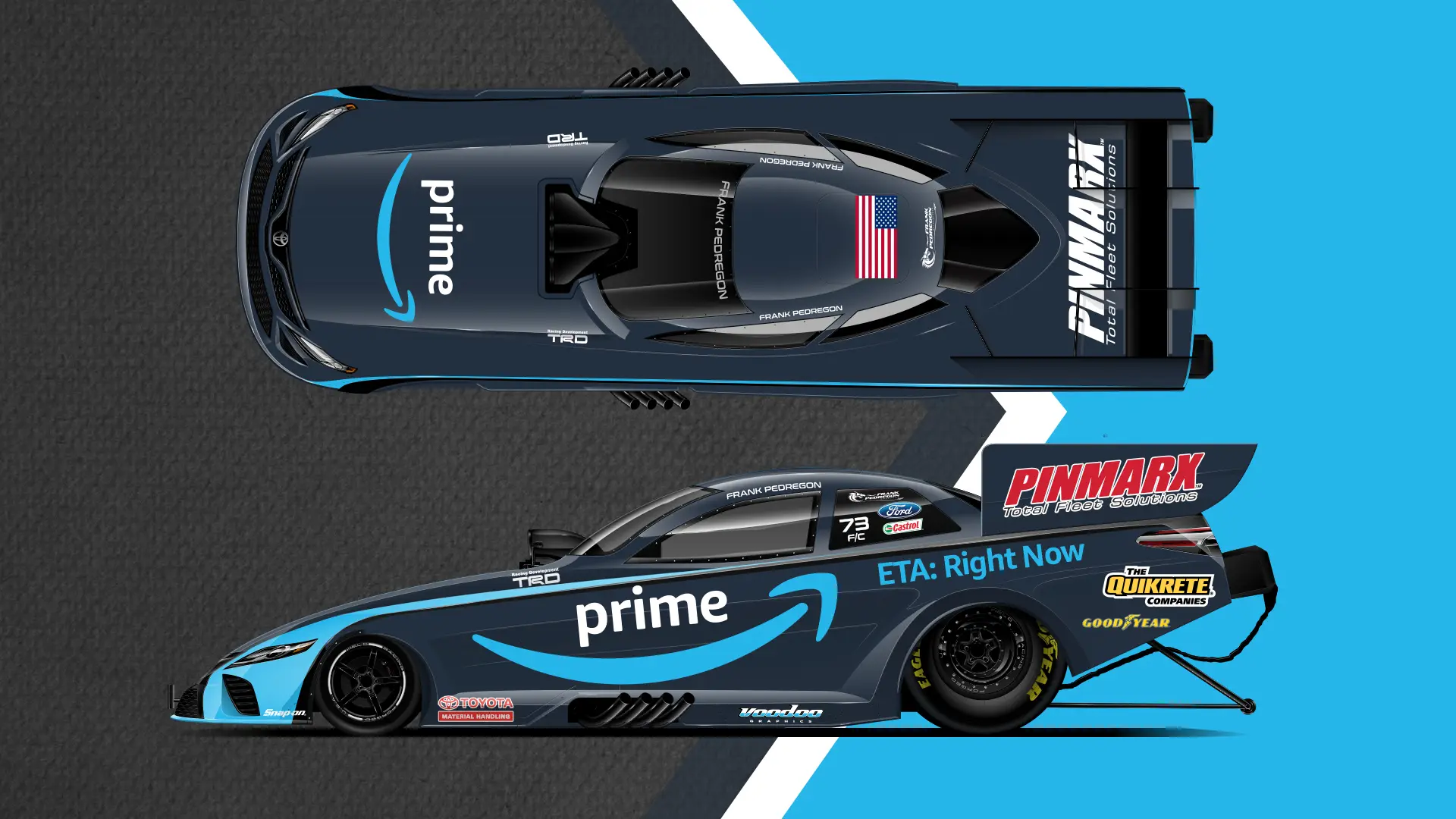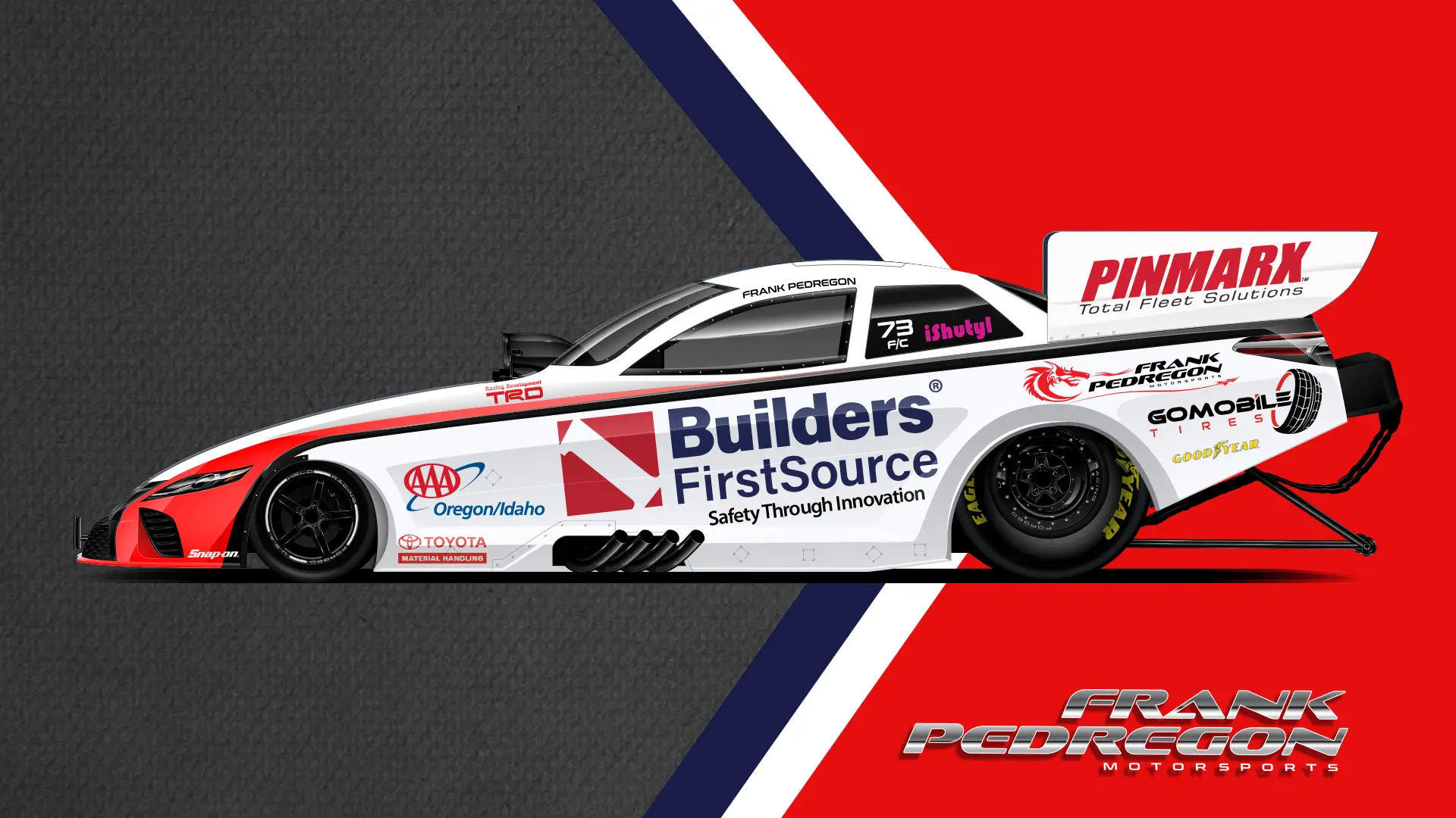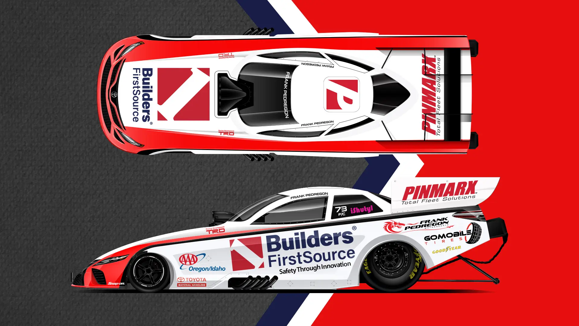 The Pedregon family has been royalty in NHRA racing for decades, with a legacy built on speed and precision. It’s been a privilege to design some of the fastest brands on the track for Frank Pedregon Motorsports and his team. My creative work reflects the intensity and power of their racing heritage, delivering bold, dynamic designs that embody their legacy.