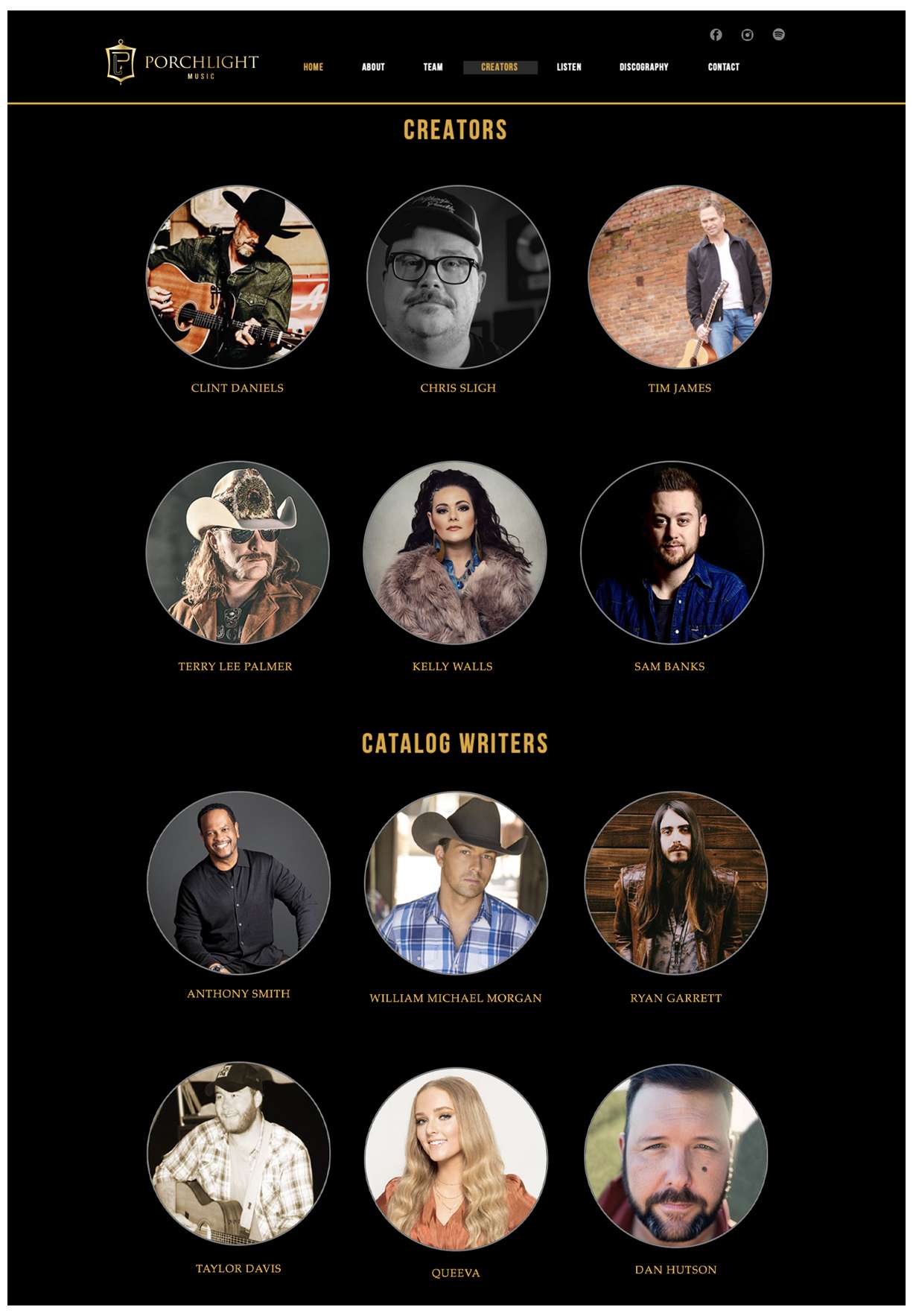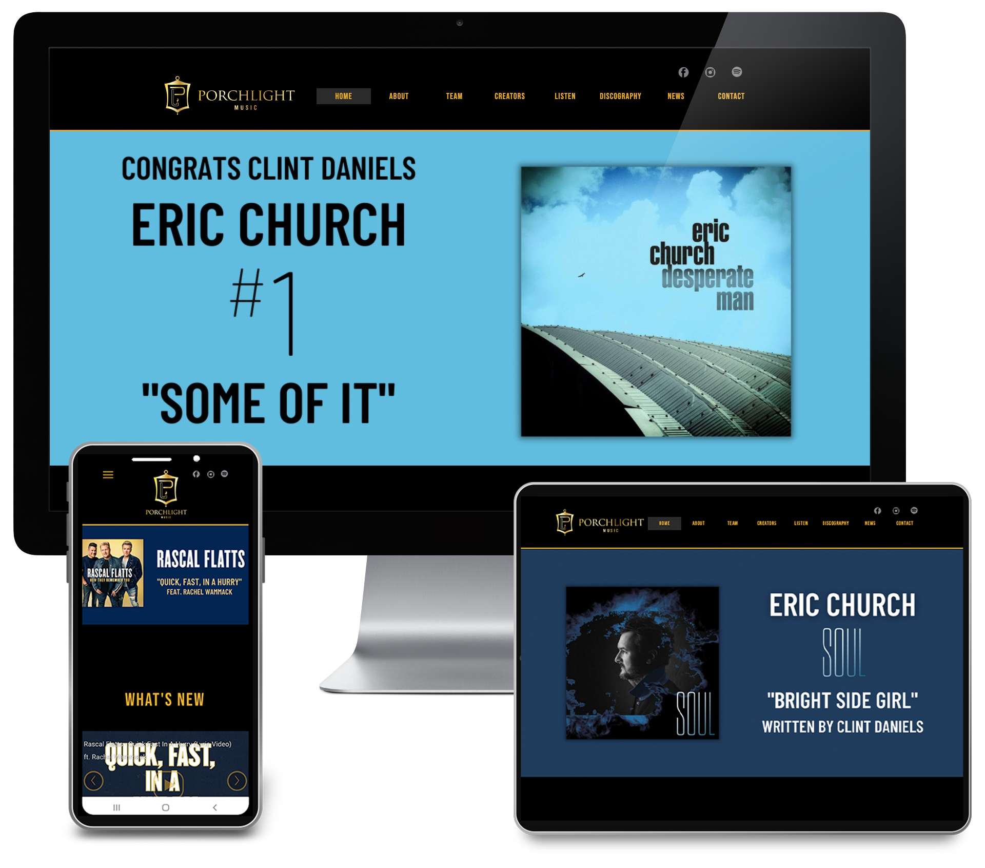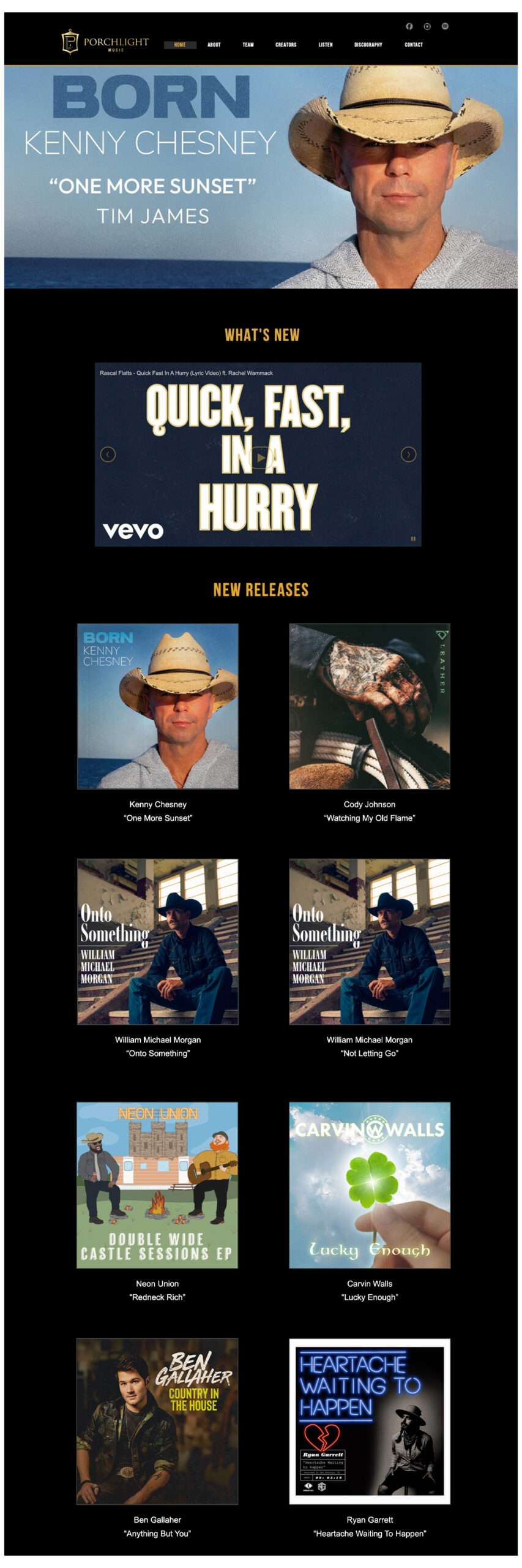 As a huge Country music fan, it was an honor to produce the web design for Porchlight Music. The creators have left their mark on the radio waves with hits from stars like Cody Johnson, Kenny Chesney, Eric Church, Jon Pardi, George Strait, Chris Stapleton, Brooks & Dunn, and Big & Rich, spanning a variety of #1 Country music bands and singers in the industry. With a strong commitment to excellence, I had the privilege of designing their website, enhancing their online presence to better showcase their incredible talent. Be sure to stream, purchase, and share their music as they continue to create and deliver new #1 hits. I wish them all tremendous success in their musical journey!