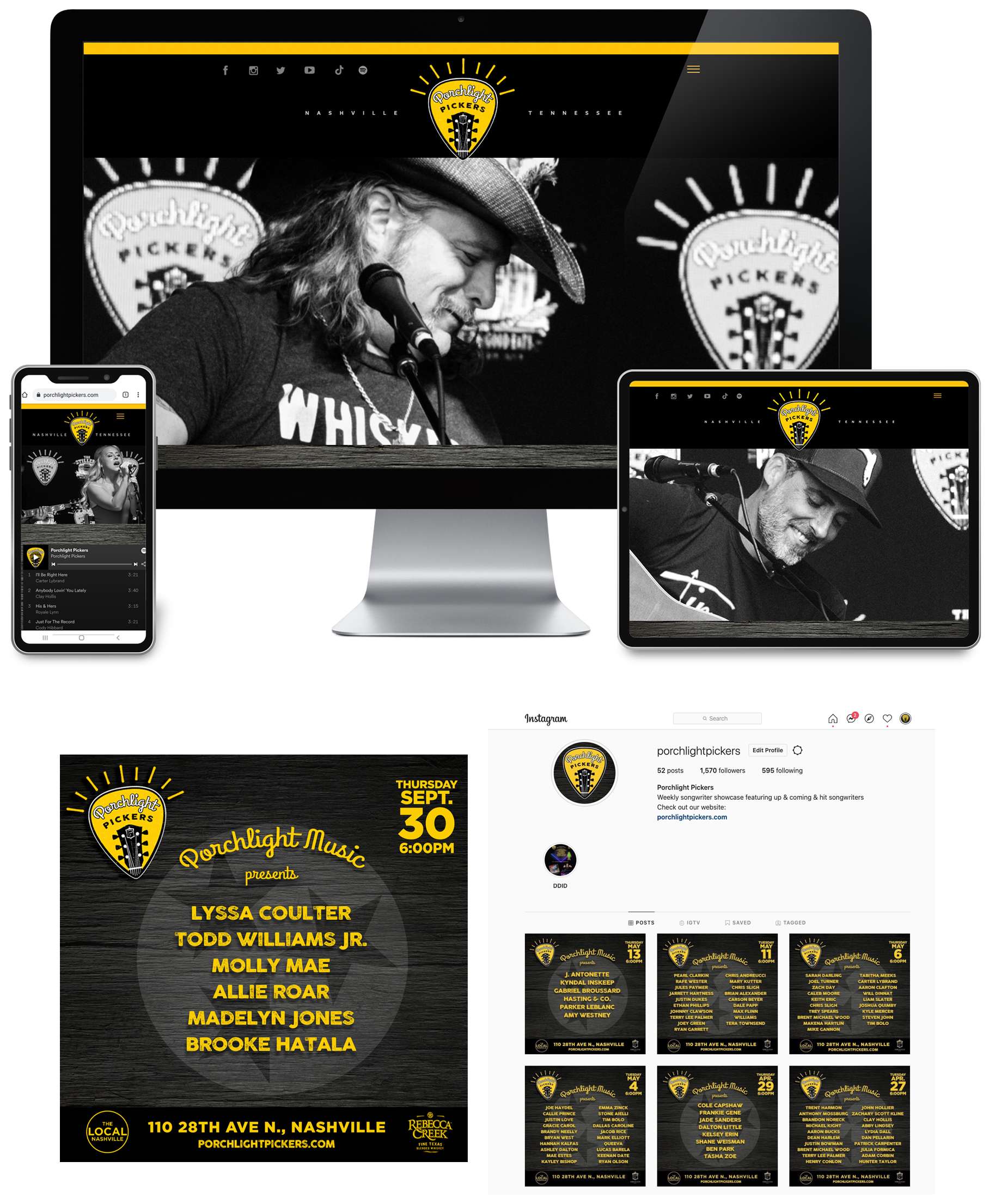 When Porchlight Pickers approached me, their initial request was simply for a flyer to promote their weekly songwriter round. However, with no existing logo or branding, I quickly realized the need to establish a complete visual identity before they could even launch. In less than 72 hours, I developed their total brand, allowing them to start strong. Since then, Porchlight Pickers has grown into a staple of Nashville’s songwriting community, consistently hosting some of the best and #1 songwriters in the music industry.